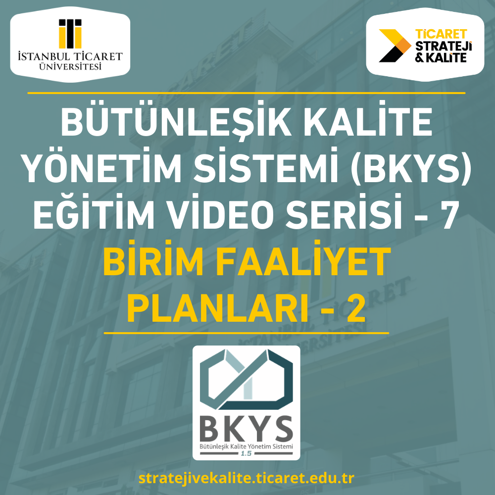 Bu videoda, İstanbul Ticaret Üniversitesi Bütünleşik Kalite Yönetim Sistemi (BKYS) modüllerinden Anket Yönetim Sistemi tanıtımı gösterilmektedir.