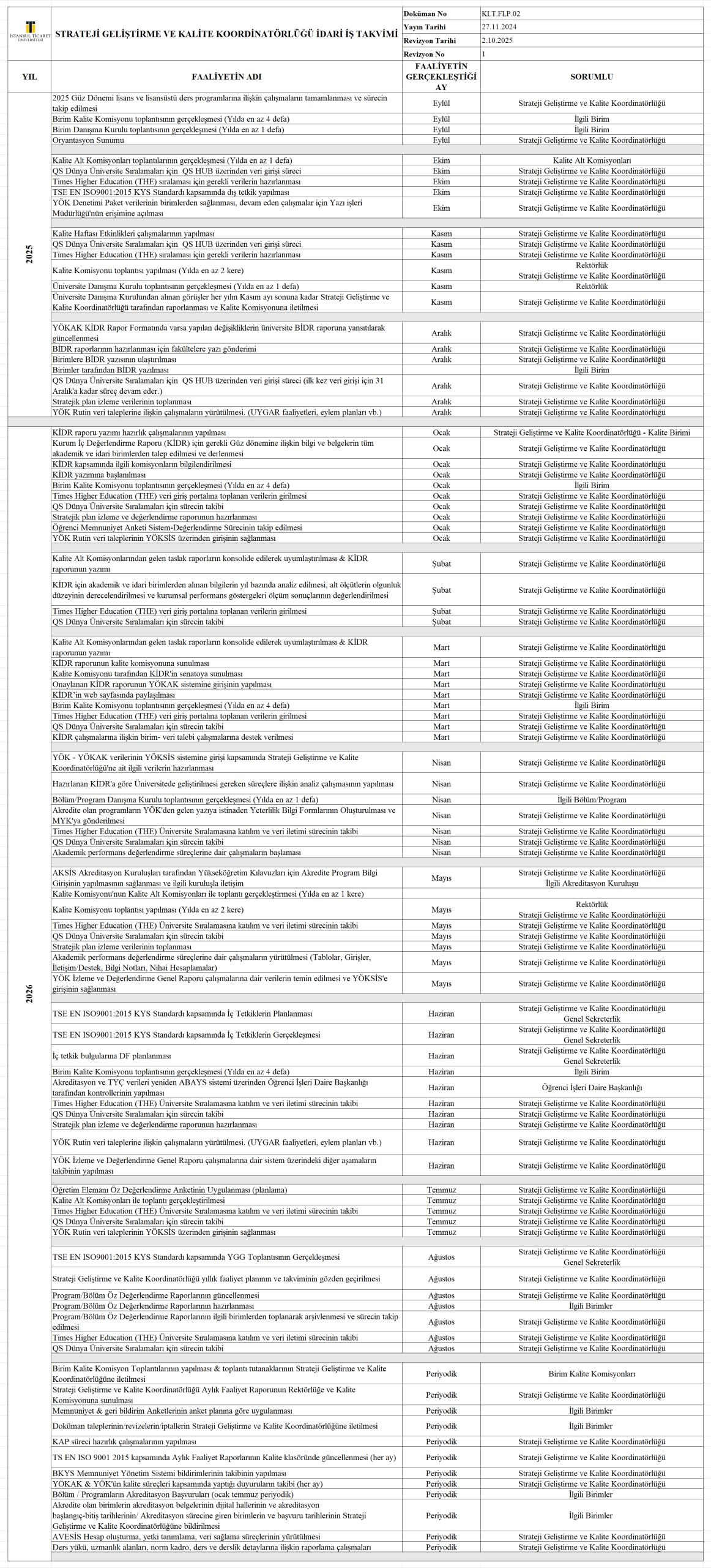 Strateji Geliştirme ve Kalite Koordinatörlüğü Yönergesi