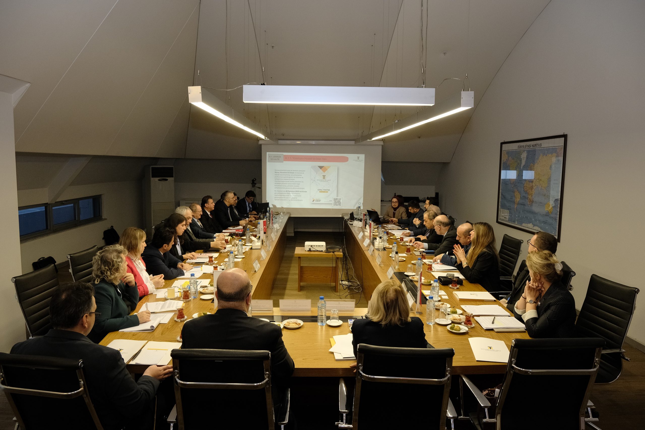 Süreç boyunca kalite güvencesi sistemimiz, eğitim-öğretim süreçlerimiz, araştırma-geliştirme faaliyetlerimiz ve toplumsal katkı alanındaki uygulamalarımızla birlikte bütüncül biçimde değerlendirildi. Üniversitemizin Bütünleşik Kalite Yönetim Sistemi (BKYS) yaklaşımı kapsamında yürüttüğü çalışmalar, süreçlerin tanımlanması, izlenmesi ve iyileştirme adımlarının PUKÖ (Planla-Uygula-Kontrol et-Önlem al) döngüsü içinde kayıt altına alınması yönleriyle ele alındı. Ayrıca stratejik planlama ve performans yönetimi süreçlerimiz ile bu kapsamda kullanılan gösterge ve izleme mekanizmalarının kurumsal karar alma süreçlerine yansımaları değerlendirildi. Üniversitemizin bilgi güvenliği yönetimi başta olmak üzere kurumsal yönetişim altyapısını güçlendiren uygulamalarının yanı sıra, uluslararasılaşma mekanizmalarımız saha değerlendirmesinde ele alınan başlıklar arasında yer aldı.