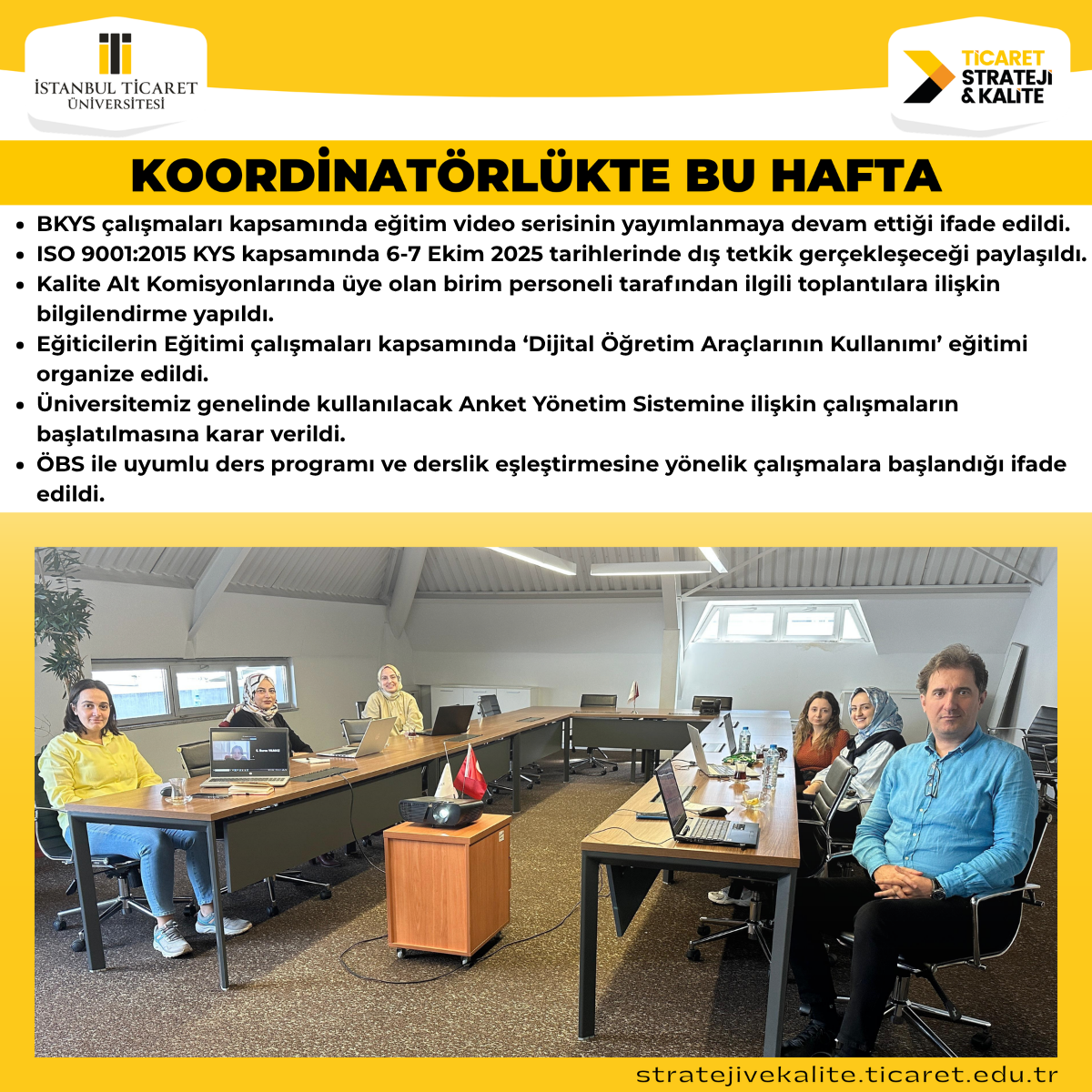 7 Ekim 2025 Tarihli Strateji Geliştirme ve Kalite Koordinatörlüğü Haftalık Değerlendirme Toplantısı