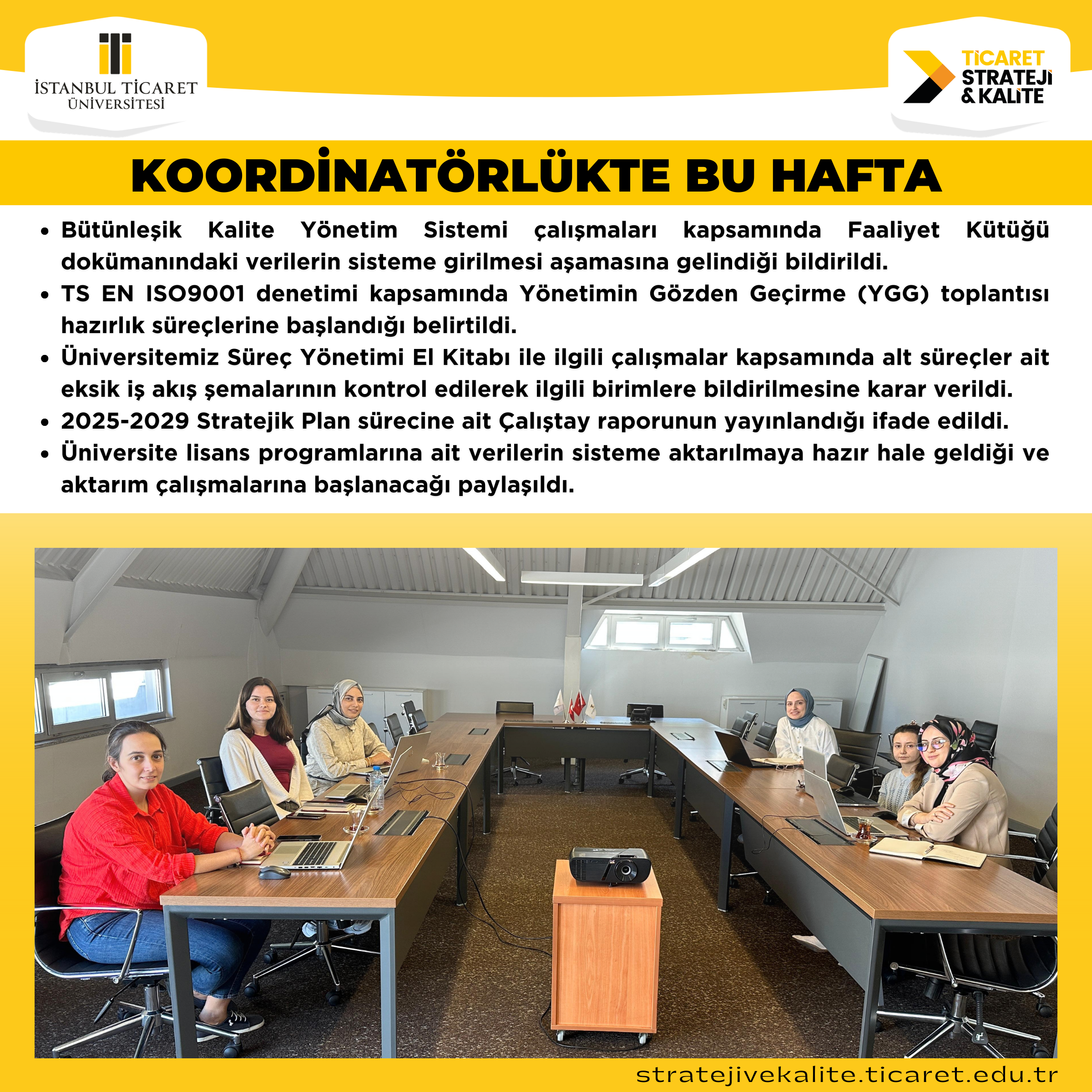 26 Ağustos 2025 Tarihli Strateji Geliştirme ve Kalite Koordinatörlüğü Haftalık Değerlendirme Toplantısı