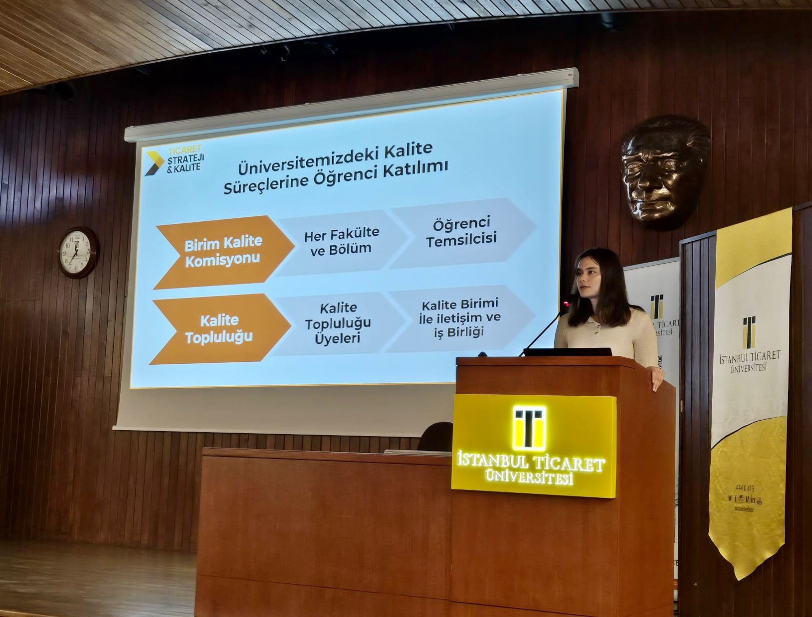 İstanbul Ticaret Üniversitesi Strateji Geliştirme ve Kalite Koordinatörlüğü olarak, 2025-2026 eğitim-öğretim yılına başlarken, 16 Eylül 2025 Salı ve 17 Eylül 2025 Çarşamba günleri Sütlüce ve Küçükyalı yerleşkelerimizde düzenlenen oryantasyon programı kapsamında yeni kayıt yaptıran öğrencilerimiz için öğrencilere yönelik kalite süreçlerine ilişkin bilgilendirici sunumlar gerçekleştirdik.